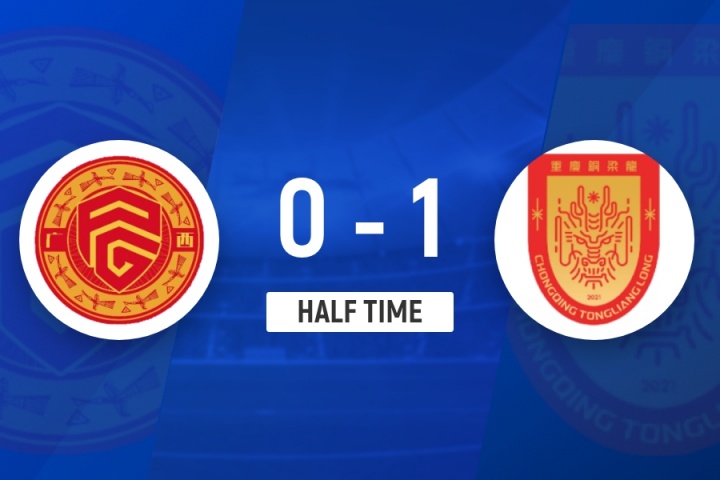 半場結束 重慶銅梁龍以1-0領先於廣西平果 黃威不幸自擺烏龍 兩隊僅有一次射正