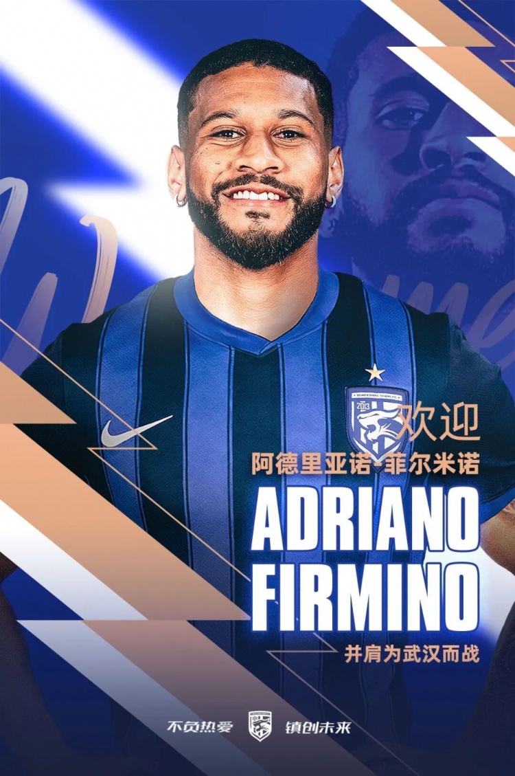 經過友好的協商,巴西球員阿德裏亞諾-菲爾米諾正式轉會至武漢三鎮足球俱樂部,加盟這支充滿潛力的球隊。
